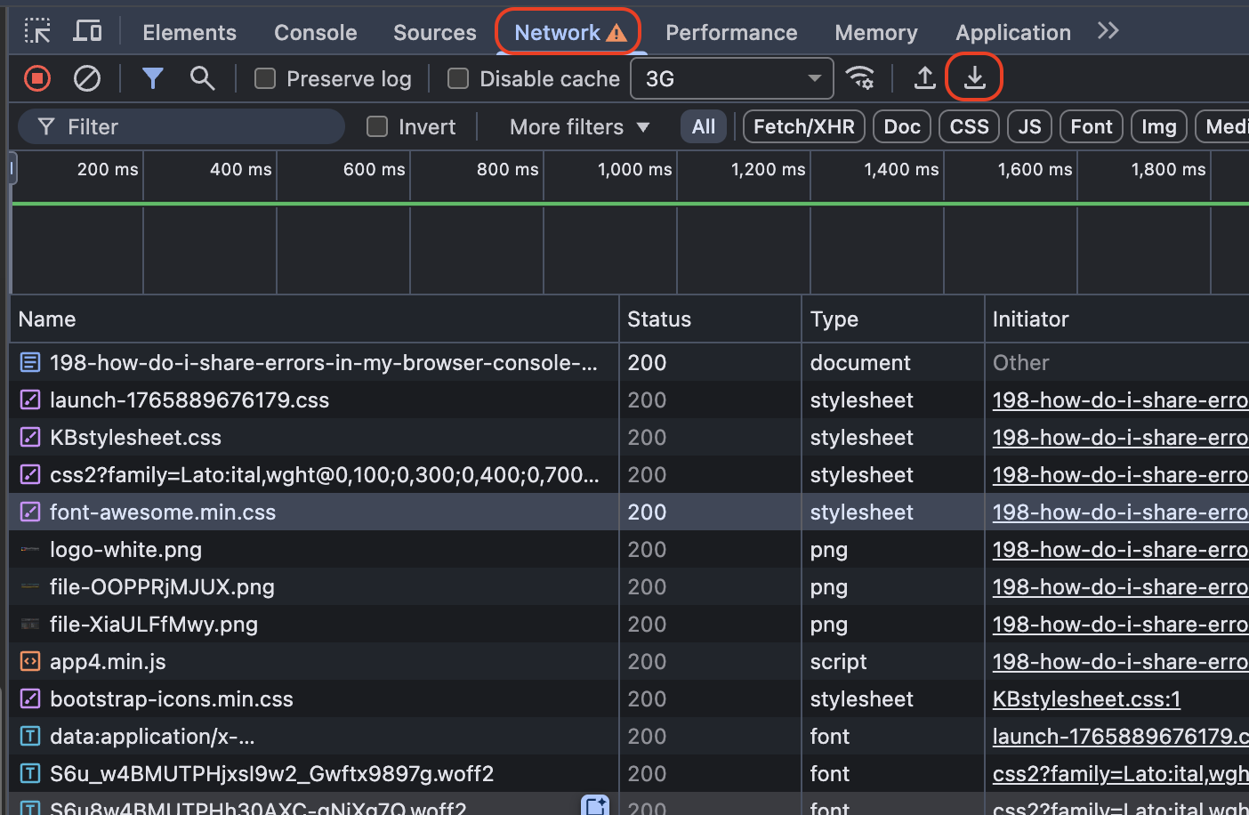 In some cases, the console screenshot doesn't contain sufficient information to diagnose the problem, and the BookWidgets support team may additionally request you send them a HAR file.
