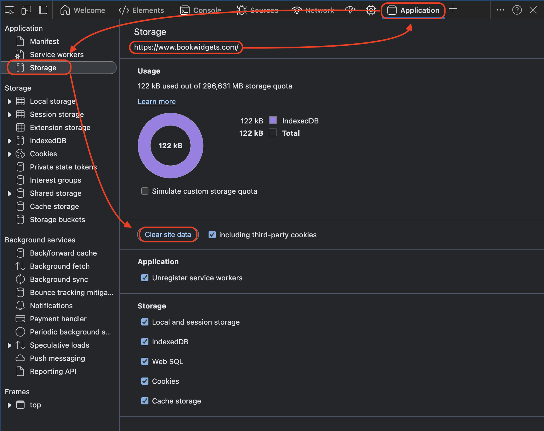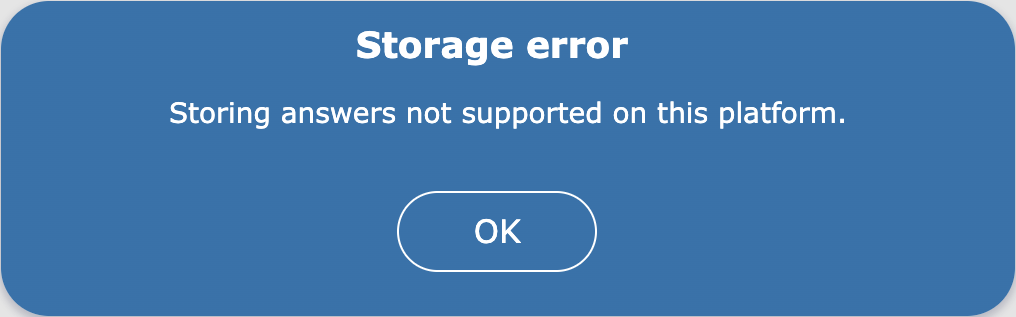 If you receive the error above or a similar error message relating to storage of data, try clearing your browser cache for https://www.bookwidgets.com.